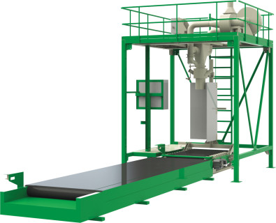 Фасовка в мягкие контейнеры типа БИГ-БЭГ с увеличенной производительностью и уплотнением хорошо сыпучих продуктов, плохо сыпучих продуктов и среднекусковых (хрупких) сыпучих продуктов.