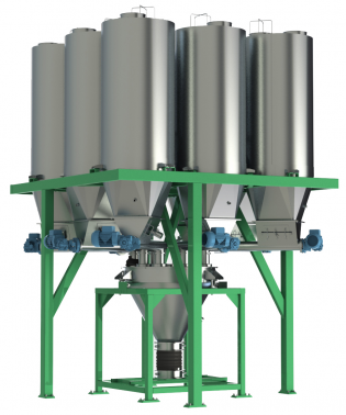 • Расходные бункера объемом 0,5 – 1 м3 на раме.