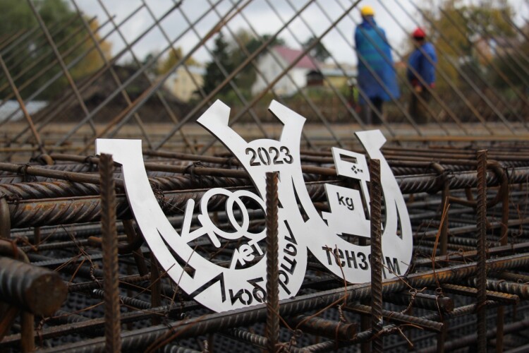 К арматуре фундамента «на счастье» прикрепили памятный знак из нержавеющей стали, представляющий собой две подковы, внутри которых число «400» в честь Юбилея городского округа Люберцы и символ электронных весов, крупнейшим производителем которых является наше предприятие. Число 2023 – год начала строительства ПИК. Хороший и надежный фундамент важен во всем – в строительстве, в процессах производства, науке, образовании и создании всего нового и прогрессивного. Не за горами уже следующий этап строительства – монтаж металлоконструкций здания цеха.